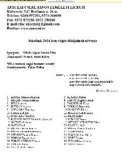 Véndiákok névsora