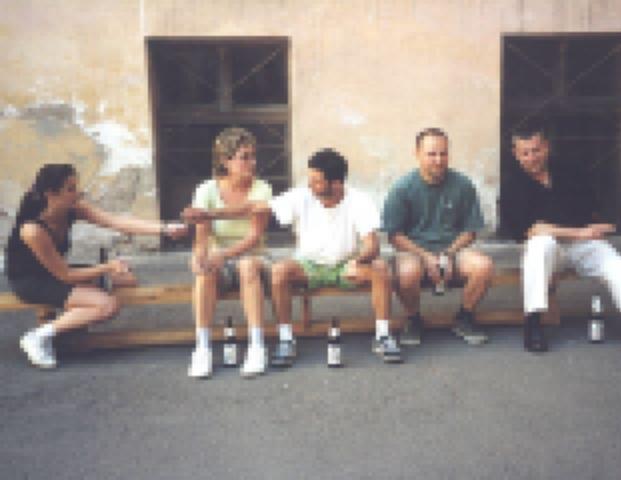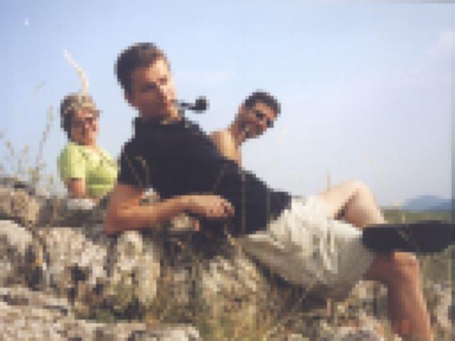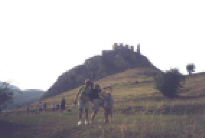 A várral szemben egy kis hegyecskén pihen Gyöngyi, Tibi és Levi
