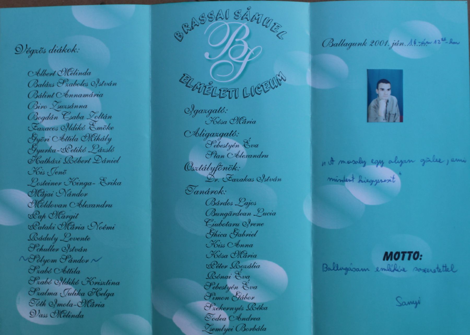 Brassai Sámuel Líceum egykori diákjai 2001 12C