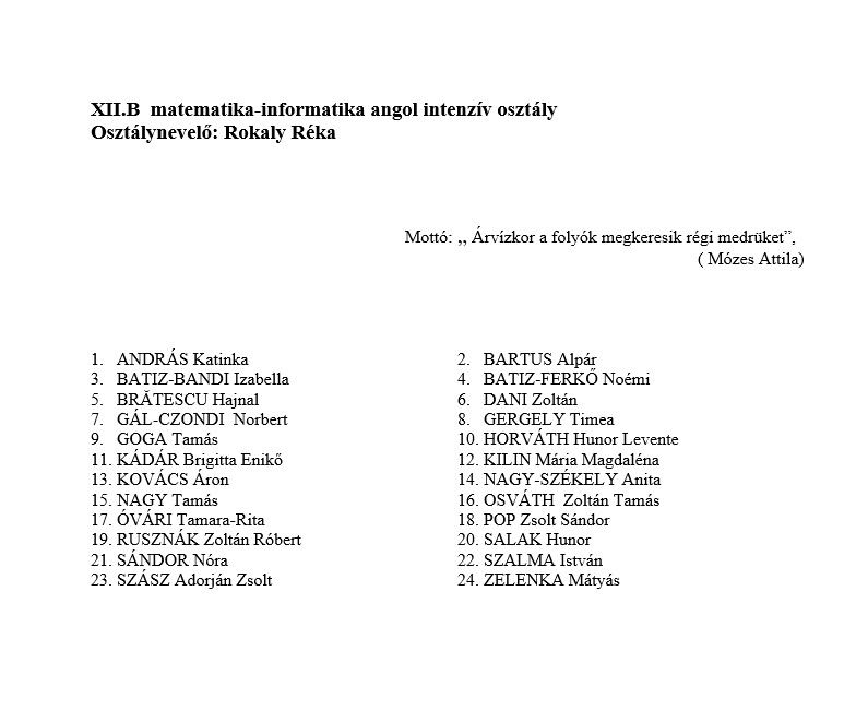 Apáczai Csere János Elméleti Líceum egykori diákjai 2013 12B