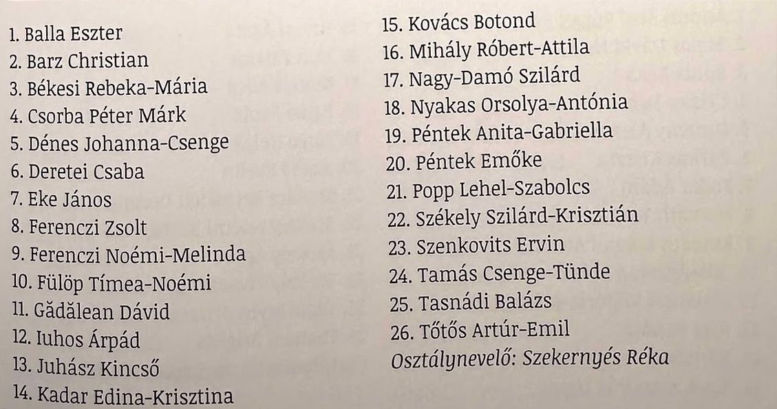 Véndiákok névsora
