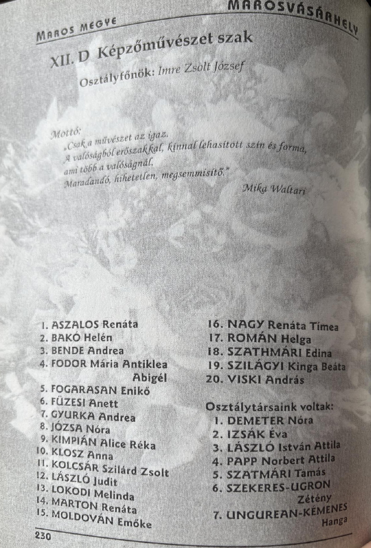 egykori diákjai