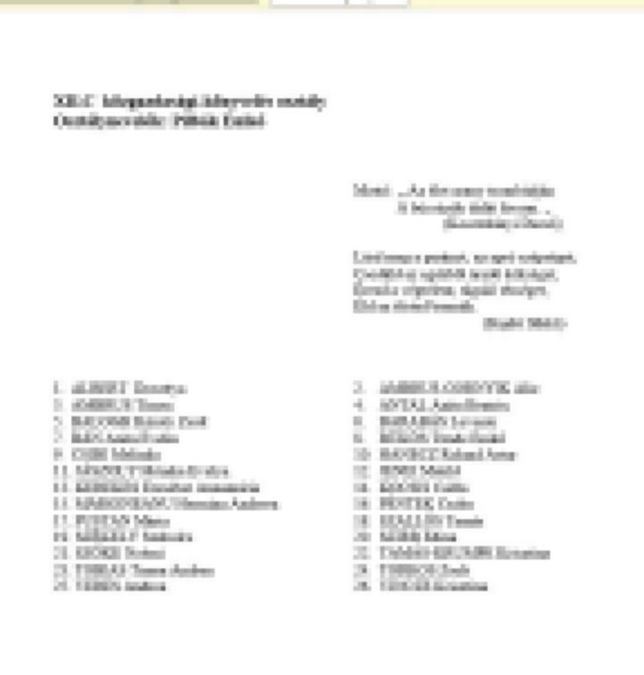 Véndiákok névsora